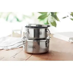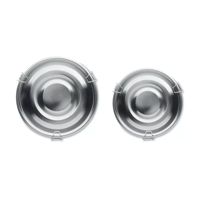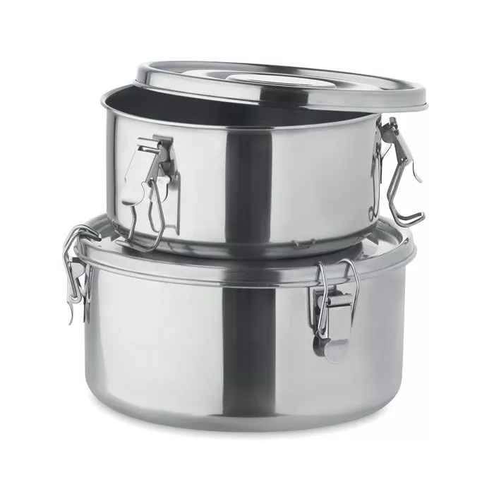 Набор контейнеров из нержавеющей стали с прочными боковыми застежками. Вместимость: 450 мл. и 900 мл.