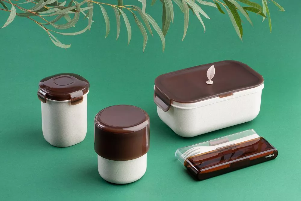 Контейнеры и столовые приборы greenMeal изготовлены из экологичного композитного материала с добавлением шелухи рисового зерна, что сокращает потребление синтетических полимеров.