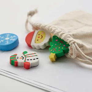 Набор из 4 различных рождественских ластиков: снежинка, Санта, елка и снеговик. Поставляются в хлопковом мешочке на шнурке.