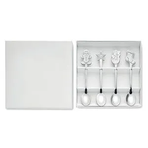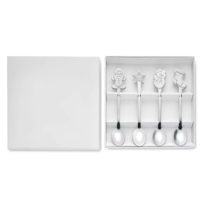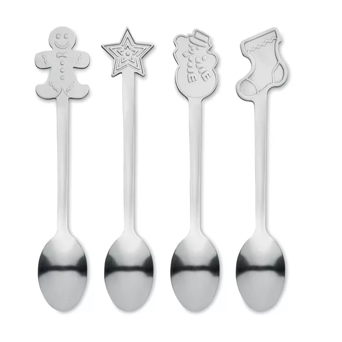 Набор из 4 чайных ложек из нержавеющей стали с рождественскими мотивами. Поставляется в подарочной коробке.