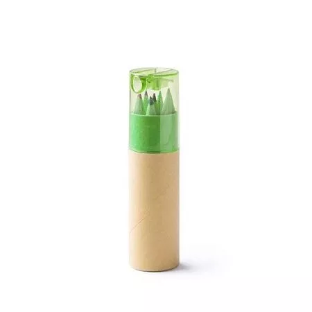 Деревянный набор из 6 карандашей в футляре из переработанного картона с полупрозрачной крышкой. Встроенная точилка в колпачке. Доступен в разных цветах.