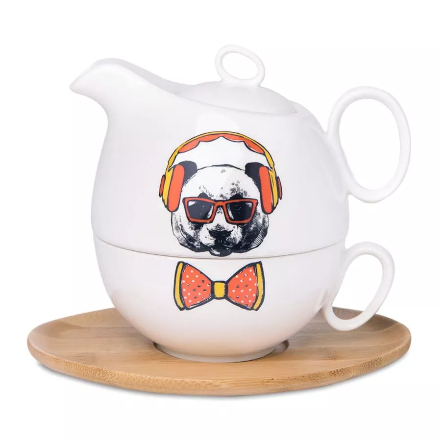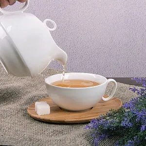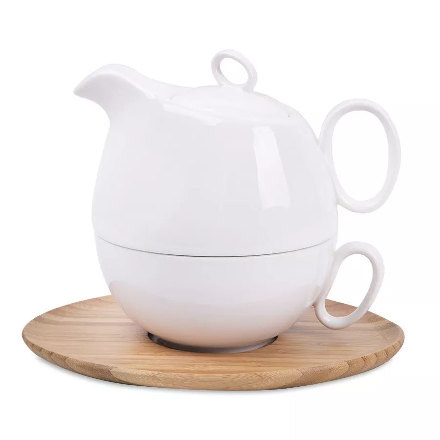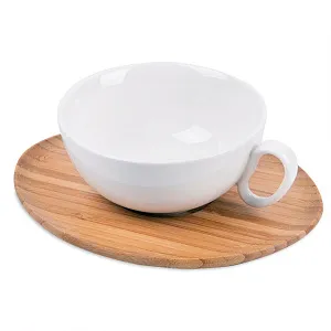 Необычный набор из фарфорового чайника и чашки на бамбуковой подставке-блюдце составит отличную теплую компанию истинным эстетам и эгоистам – разумеется, в хорошем смысле этого слова!Секрет этой пары в том, что чайник можно поставить на чашку сверху. Это позволяет и сэкономить место в кухонном шкафу или на рабочем столе, и сохранить температуру горячего чая или кофе как в чайнике, так и в слегка неполной чашке. Широкое блюдце не скользит и не царапает даже самую хрупкую поверхность, а оригинальный дизайн с удобными ручками-петельками впишутся в любой интерьер.Гармония элегантного фарфора и теплого и гладкого бамбука придаст особое очарование каждому чаепитию, придаст спокойствия и уверенности. Истинное удовольствие для настоящих интровертов!Осталось добавить только логотип – и индивидуальный подарок готов! nbsp;Поставляется без подарочной упаковки