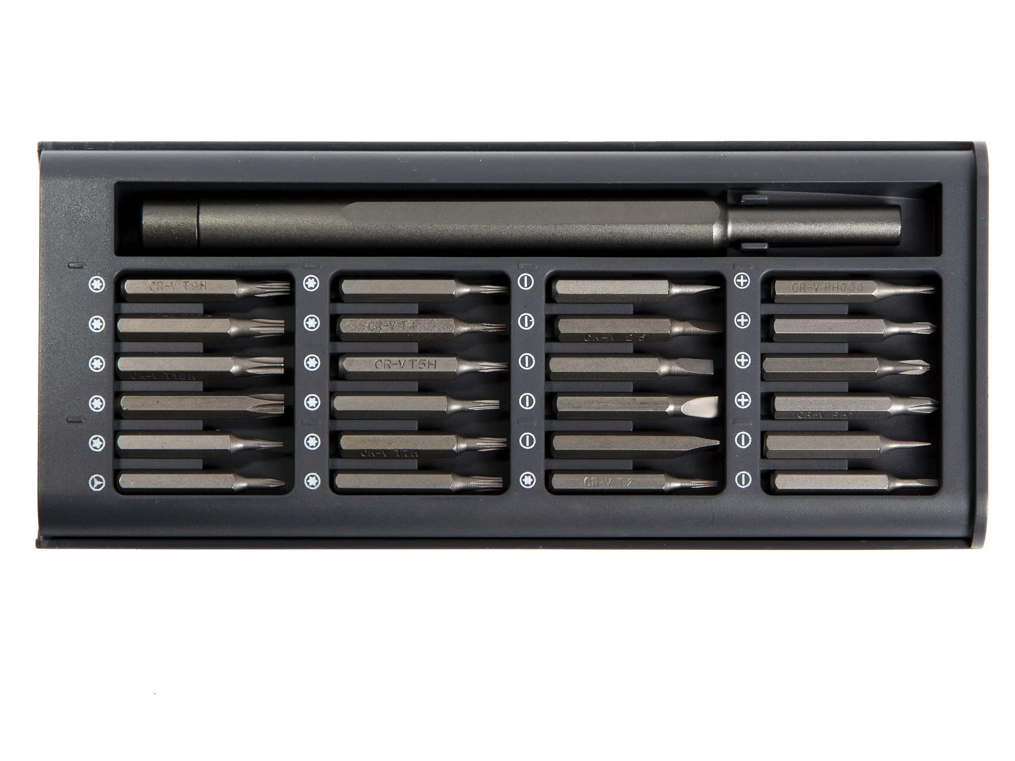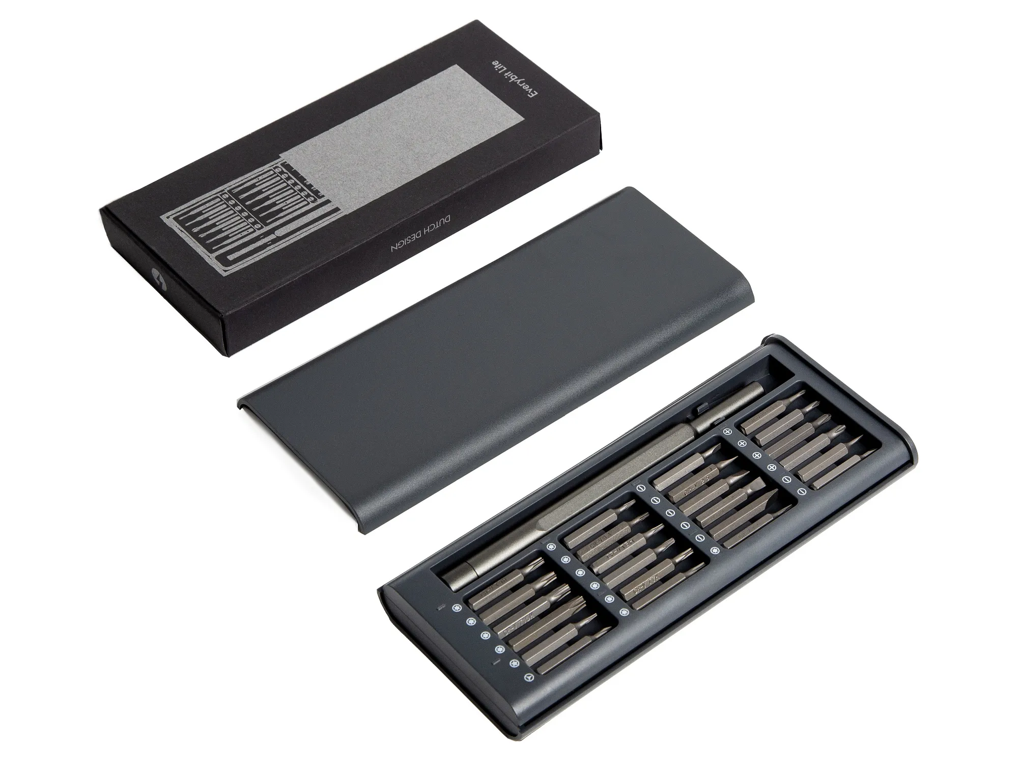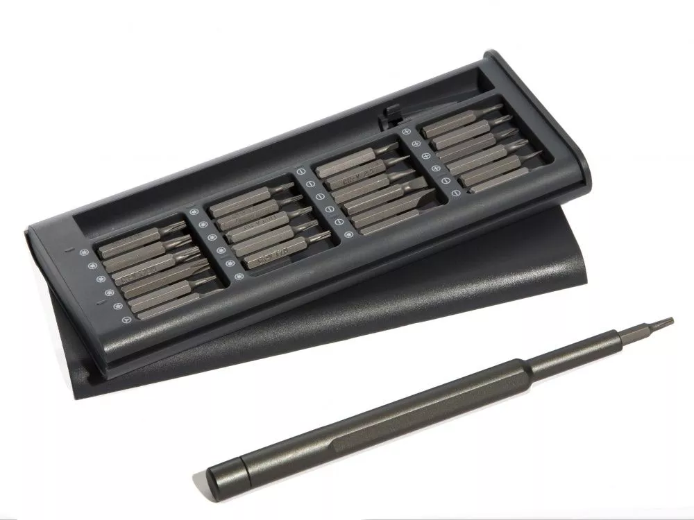 Everybit Lite — это набор отверток 24-в-1, изготовленный из прочной стали CRV и включающий в себя необходимые детали для ремонта смартфонов, планшетов, ПК и игровых консолей. В комплекте с анодированным, противоскользящим и вращающимся колпачком входят долота из закаленной стали с прорезями, крестообразные, шестигранные, Torx, пятилопастные и трехлопастные. Подходит для ремонтных работ с iPhone, iPad, MacBook Air и MacBook Pro, а также Nintendo, PlayStation и XBox. Кейс выполнен из пластика. УФ-печать (УФ-печать цветные изделия) на данный товар осуществляется бесплатно. Оплачивается только настройка оборудования в размере 1800 рублей на весь тираж.