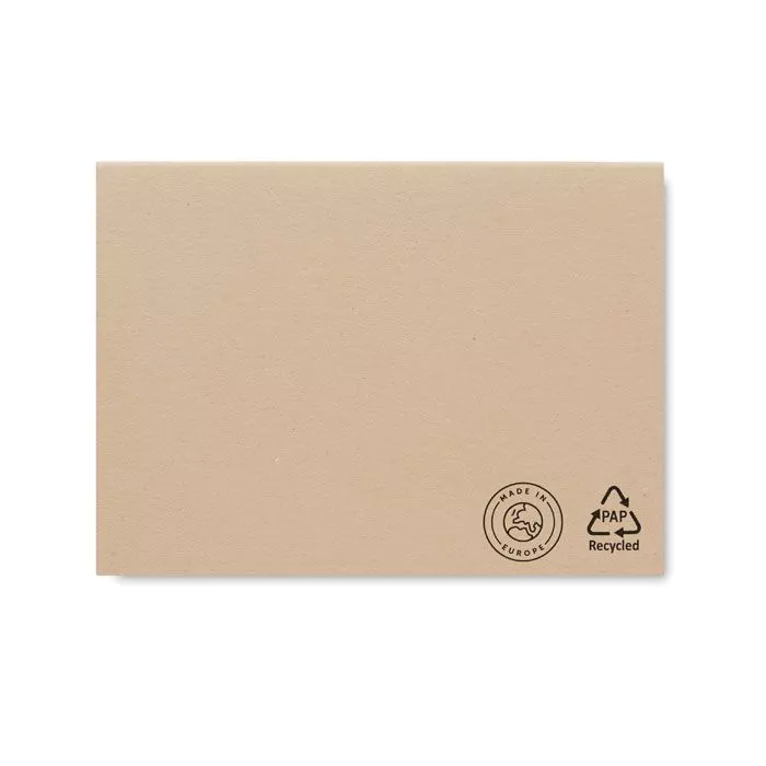 Блокнот для липких заметок из 2 частей с обложкой из переработанной бумаги. Блокнот для липких заметок (25 листов) и 3 маркера для страниц разных цветов. Сделано в ЕС.