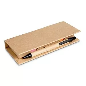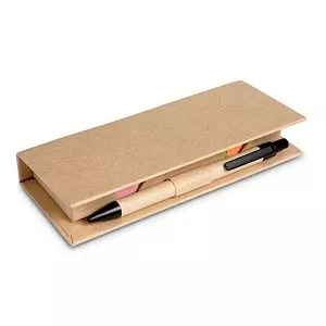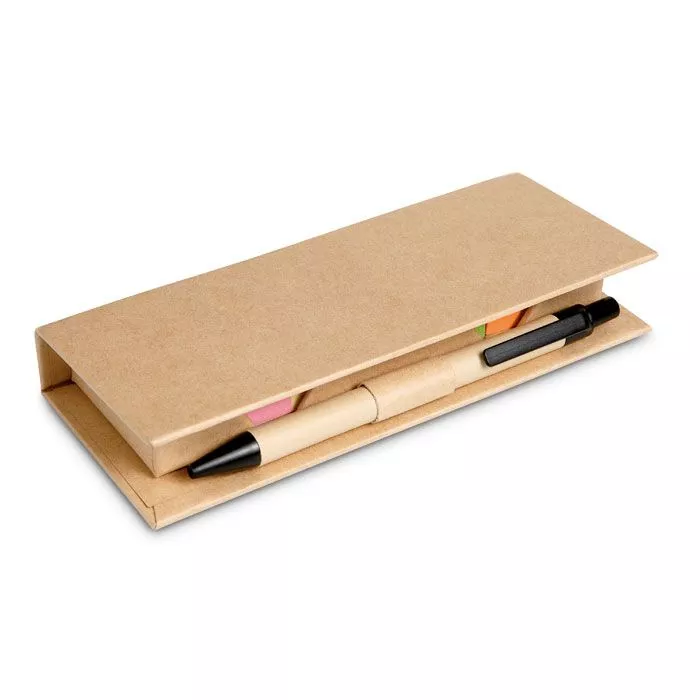 Набор: разноцветные стикеры и закладки, прозрачная линейка и шариковая эко-ручка с синими чернилами в картонной коробке.