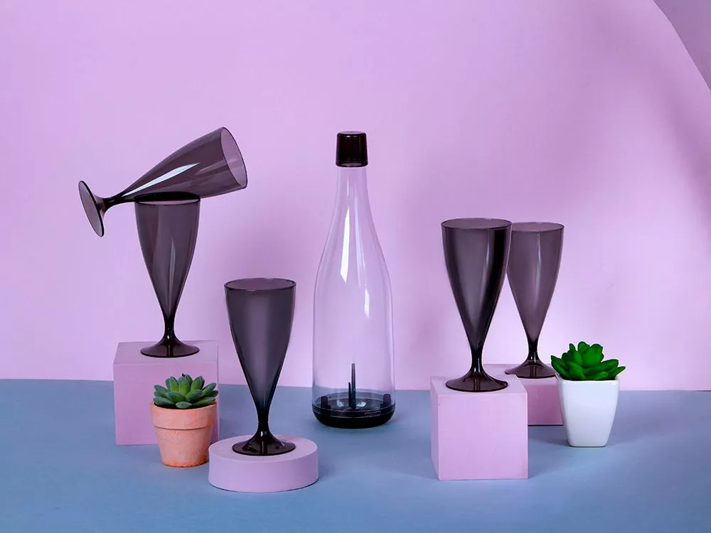 Многоразовые пластиковые бокалы Party позволят сохранить эстетику употребления вина даже на природе. Они лёгкие и имеют разборную конструкцию, благодаря которой их легко сложить один в другой для экономии места. Бокалы упакованы в пластиковую бутылку со съёмным дном, которую удобно брать с собой на пикники. • Стильный дизайн • Лёгкие • Удобная упаковка, не занимает много места • Съёмная ножка Трафаретная печать круговая (1 цвет (цветные изделия)) на данный товар осуществляется бесплатно. Оплачивается только настройка оборудования в размере 5700 рублей на весь тираж.