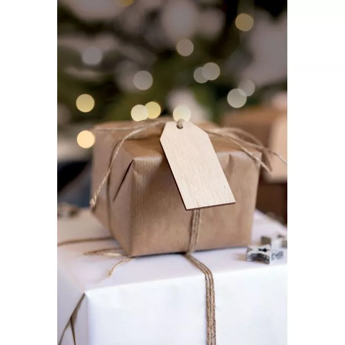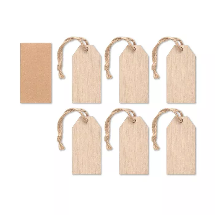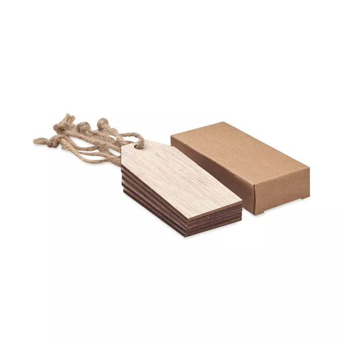 Набор из 6 деревянных подарочных бирок на джутовом шнурке в крафтовой подарочной коробке.