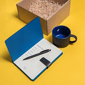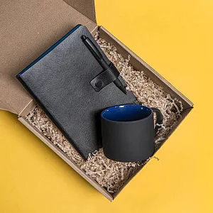 Набор подарочный nbsp;В набор входят: Кружка YASNA с прорезиненным покрытием, черный с синим, nbsp;арт. 23506 24размер: nbsp;Н=7,3см, D=9смобъем: 310 млматериал: фарфорЕжедневник недатированный STELLAR, формат А5арт. 24728 35 24Цвет обложки черныйЦвет обреза, близкий к пантону 301C nbsp; nbsp; nbsp;Размер 145*205 мм, переплет мягкийОбложка nbsp;PU nbsp;ValsePU nbsp;застежка-клапан на кнопкеБлок недатированный, в линейкуСкругленные углы, двухкрасочная печатьБумага кремовая, плотность 70г м2Форзац нахзац в цвет обреза272 страницы14 инфо страницПерфорация на 8ми последних листахЛяссе в цвет обложкиУпаковка крафтовый сливбоксENIGMA, ручка шариковая, черный синий, nbsp;арт. 40501 35 24размер: nbsp;1 х 14 смматериал: металл, пластик, софт-покрытие Стружка бумажная, бежевая 3 мм, nbsp;арт. 20413 204вес: 50 гр.Коробка подарочная BOX, самосборнаяарт. 21016размер 20,5 x 21 x 11смматериал: картон МГК бурыйВНИМАНИЕ! Набор поставляется в разобранном виде.