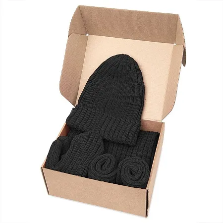 Мягкая вязаная шапка с отворотом бини, однослойный вязаный шарф, лёгкие варежки и уютные носки - полная полушерстяная коллекция nbsp;НАСВЯЗИ© в одном подарочном наборе!