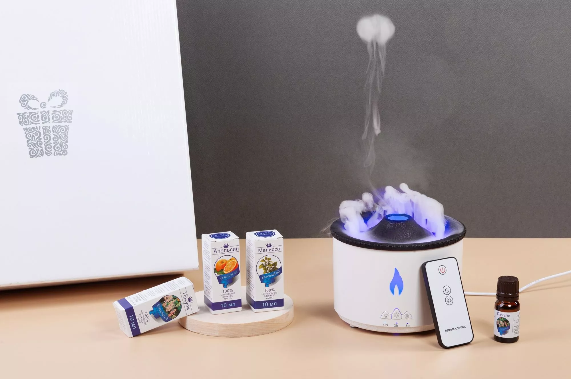 Подарочный набор "Вулкан чувств" для создания уютной атмосферы. Современный аромадиффузор "Smart Volcano" с эффектной подсветкой не только яркая деталь в интерьере, но и настоящий помощник в укреплении иммунитета, за счет поддержания оптимального микроклимата в помещении и функции ароматерапии.