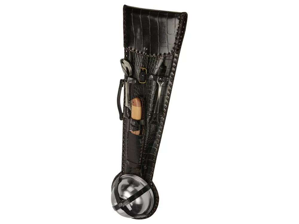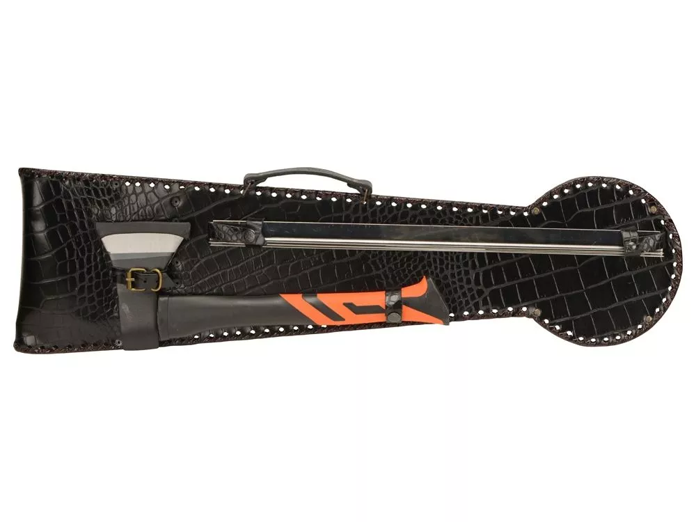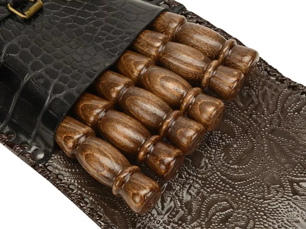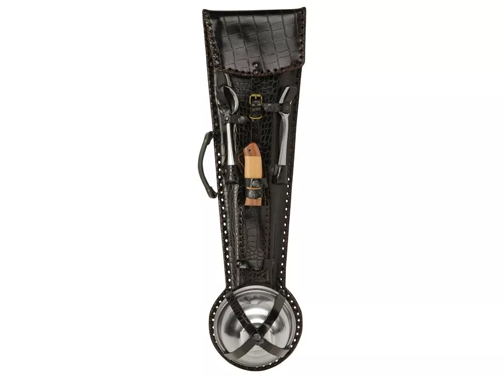 Набор для пикника в кожаном чехле ручной работы. В комплект входит: Тарелка 500 мл d16 х 7 см - 6шт Стопка d5,2 х 6 см - 6шт Нож 26 х 4 х 2,5 см - 1шт Ложка 19,3 х 4,5 х 3 см - 6шт Вилка 19,3 х 2,5 х 2 см - 6шт Топор 39,5 х 14,5 х 3,2 см - 1шт Ножки для мангала 50,5 х 31 х 1 см - 2шт Шампур d2,2 х 66 см - 6шт