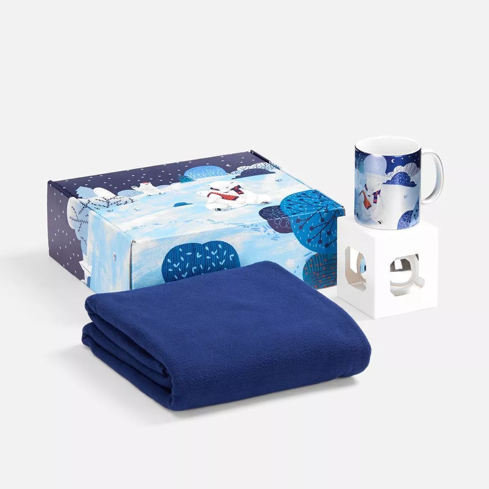 «Праздничный полюс» сочетает практичность с новогодней эстетикой — это готовый сценарий уютного вечера. Каждый элемент набора — часть праздничной умиротворяющей истории, где нет места суете, а есть только тихие радости: укрыться пледом, сделать глоток любимого горячего напитка и повесить на елку еще одну искрящуюся деталь. Это подарок, который говорит: «Пора замедлиться и впустить волшебство!».