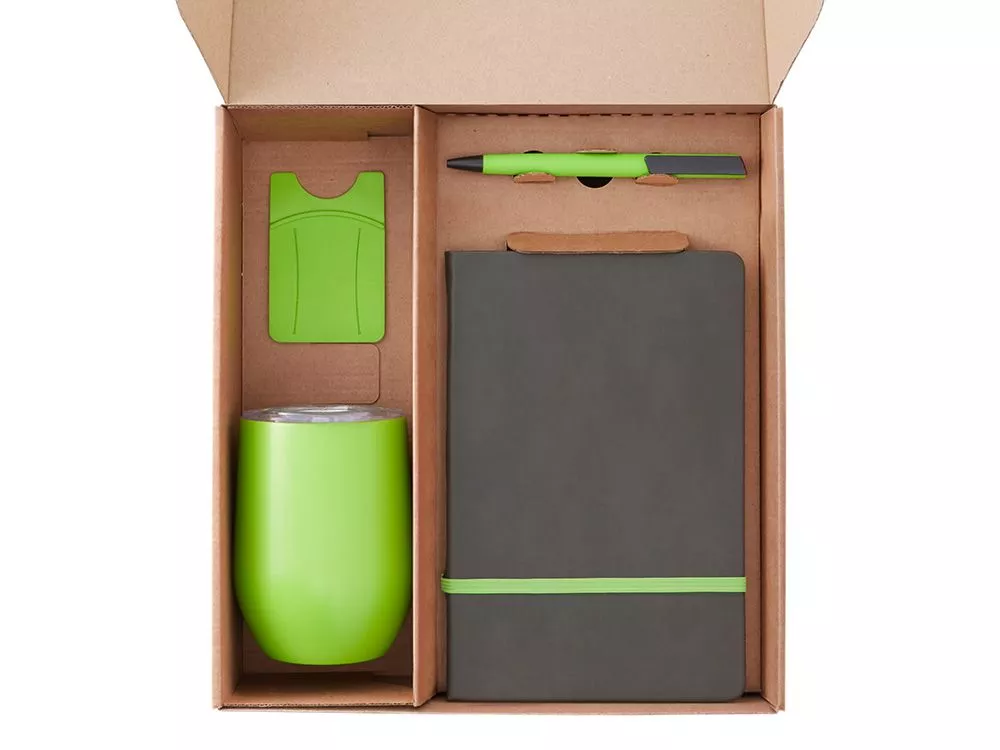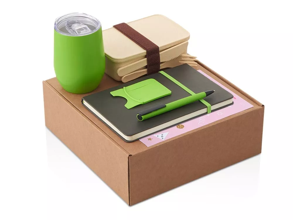 Функциональный и сбалансированный набор для сотрудников, партнёров или клиентов — отлично подойдёт для welcome-боксов, тимбилдингов, внутренних мероприятий и корпоративных праздников. Состав набора: • Блокнот — удобный формат для записей, брифов и ежедневных задач • Ручка — классическая, с необычным слайдером и приятной soft-touch поверхностью делает письмо более комфортным. • Универсальная термокружка Sense понравится как любителям горячих напитков, так и холодных, ведь она сохраняет напитки горячими в течение 6 часов, а холодными - 12 часов. Подходит для офиса и поездок • Ланчбокс — компактный и легкий, для здоровых перекусов и экономии времени. Для дополнительной надежности ланчбокс перехвачен упругой резинкой, которая помогает удерживать крышку на месте. Эта же резинка служит фиксатором для столового набора, который идет в комплекте — вилки, ножа и ложки. • Силиконовый картхолдер для телефона с держателем крепится на заднюю панель смартфона и заменяет кошелёк в повседневной суете. Удобно для пропусков и карт. • Открытка — элемент персонализации, в комплект можно вложить индивидуальное послание • Универсальный ложемент обеспечивает аккуратное размещение и надёжную фиксацию элементов, делая набор эффектным и презентабельным при вручении. • Дополнительное преимущество — набор доступен в конструкторе наборов: компоненты можно заменить и собрать индивидуальный вариант под стиль компании или вкусы получателя. • Готовое решение для корпоративных подарков • Все элементы функциональны и актуальны для повседневного использования