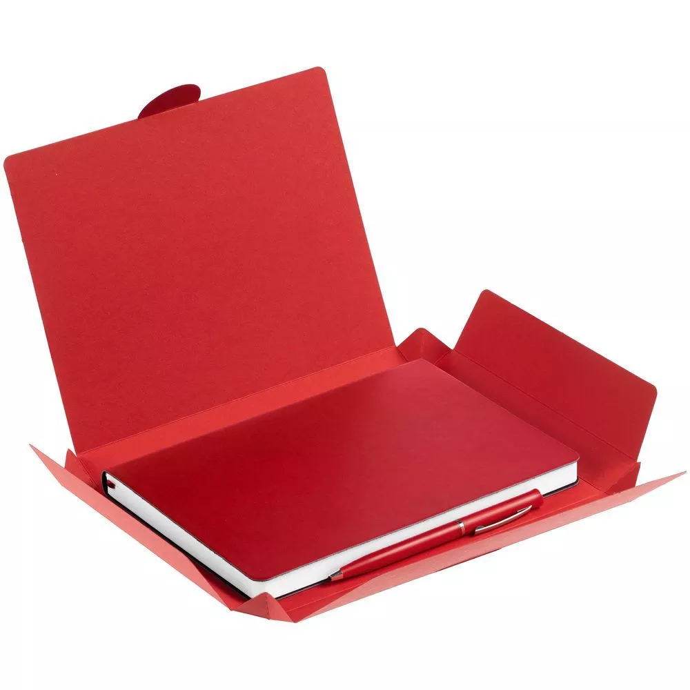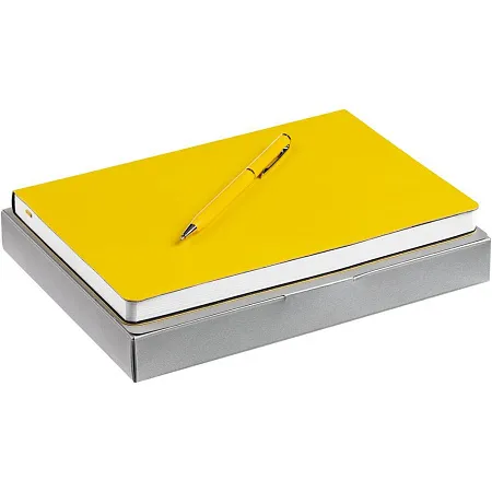 Недатированный ежедневник с гибкой обложкой из материала Latte с ляссе в цвет обложки, а также ручка в тон — в подарочной коробке из дизайнерского картона.
