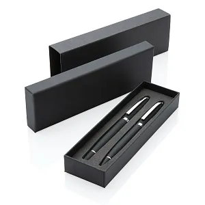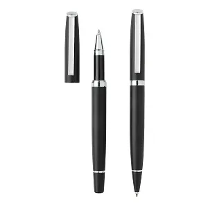 Простой, но элегантный. Благодаря матовому покрытию этот набор подарит вам ощущение роскоши, очень приятный на ощупь. В набор входит шариковая ручка и ручка-роллер. Обе ручки заправлены немецкими чернилами Dokumental® для гладкого письма. Шариковая ручка способна прочертить линию длиной до 1200 м, ручка-роллер — до 400 м. Поставляются в подарочной упаковке.