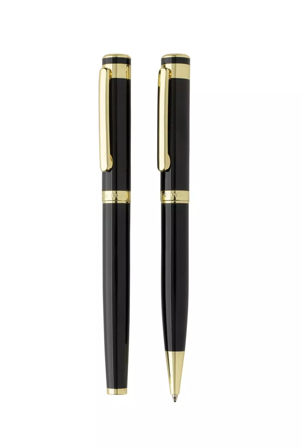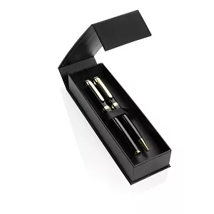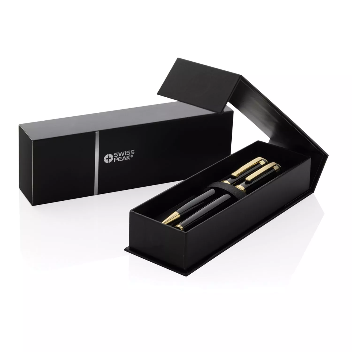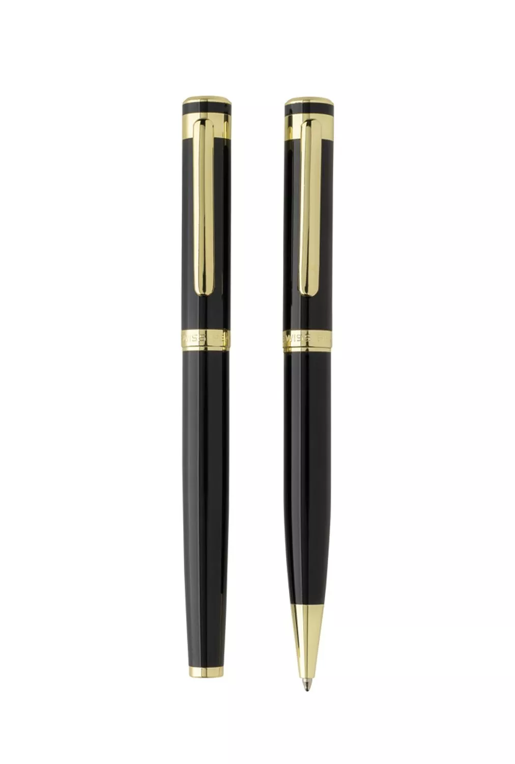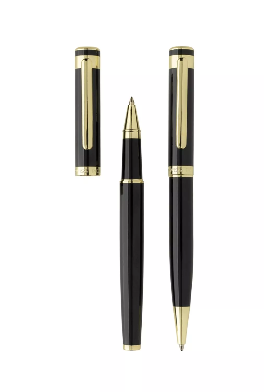 Получите новые ощущения от письма при помощи набора ручек Luca бренда Swiss Peak. Элегантный и экологичный: изделия на 55% сделаны из переработанной латуни, сертифицированной RCS. Шариковая ручка оснащена поворотным механизмом и синими чернилами, толщина письма 1 мм. Гелевая ручка с колпачком с той же толщиной письма 1 мм, но линия получается более мягкой. Золотистые детали создают особенное настроение. Набор поставляется в подарочной коробке. Идеально подойдет тем, кто ценит роскошь и стиль.