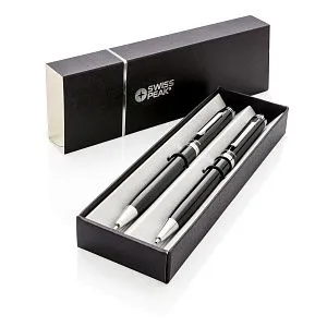 Элегантный набор Luzern от бренда Swiss Peak выделяется своим строгим лаконичным дизайном. В него входят шариковая ручка и механический карандаш. В ручке используются качественные немецкие чернила, которых хватит, чтобы прочертить линию длиной 1200 м. Механический карандаш поставляется с тремя сменными стержнями толщиной 0,7мм. Набор упакован в фирменную подарочную коробку.