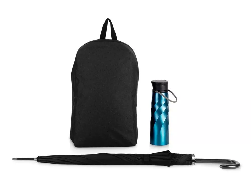 Must-have для жизни в городе: рюкзак, зонт и бутылка для воды. Вместительный рюкзак из полиэстера позволит аккуратно перевозить компьютер, планшет или любой другой гаджет, с помощью лямки их можно надежно зафиксировать внутри рюкзака. Классический зонт-трость имеет купол из эпонжа плотностью 190T. Металлическая ось дополнена прочными и легкими спицами из файбергласса. Бутылка для воды сочетает в себе превосходную функциональность и внешний вид. Высококачественная сталь 18/8 и одностенная конструкция делает бутылку не только прочной, но и лёгкой. Крышка сконструирована таким образом, чтобы ее можно полностью разобрать для удобной чистки. - внутреннее отделение рюкзака для небольших предметов; - зонт с функцией анти-шторм; - объем бутылки 1000 мл. Внимание: При транспортировке бутылка находится внутри рюкзака, а зонт поставляется отдельно в транспортной упаковке.