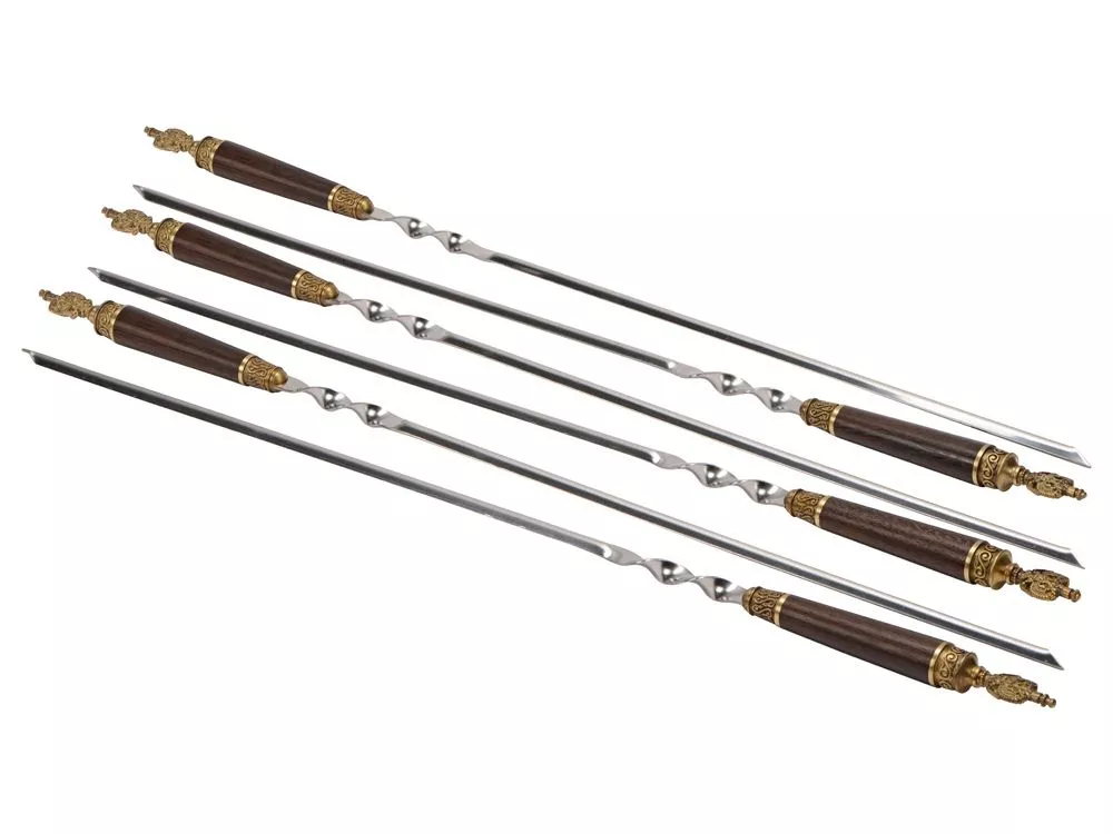 Шампура из нержавеющей стали с ручками из дерева венге и литьем в виде герба РФ. Дипломат из натуральной кожи с бархатной отделкой.