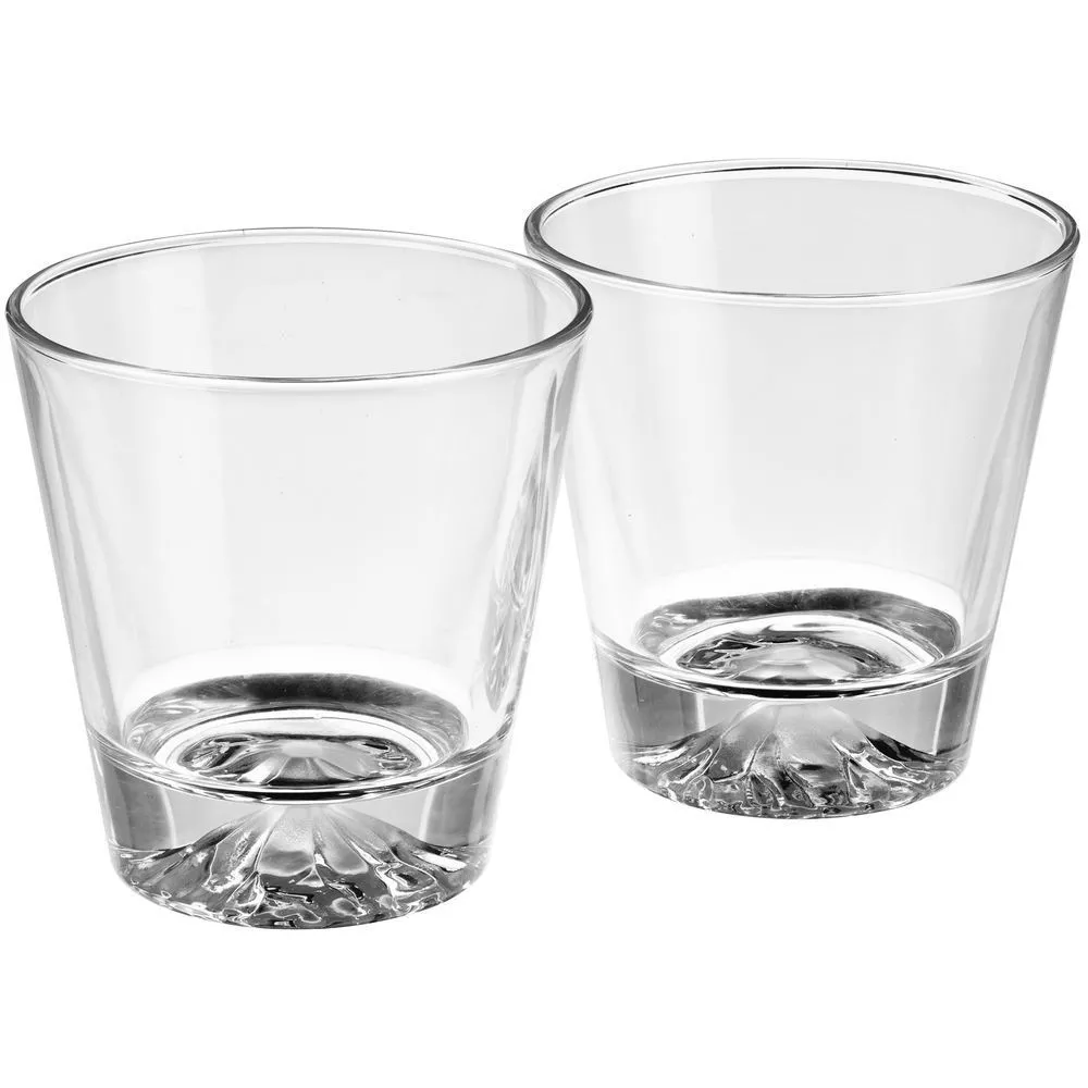 Дно стаканов выполнено таким образом, что кажется, будто в него заключена гора Фудзи. И любоваться ее вершиной можно, не дожидаясь хорошей погоды.