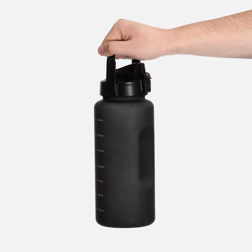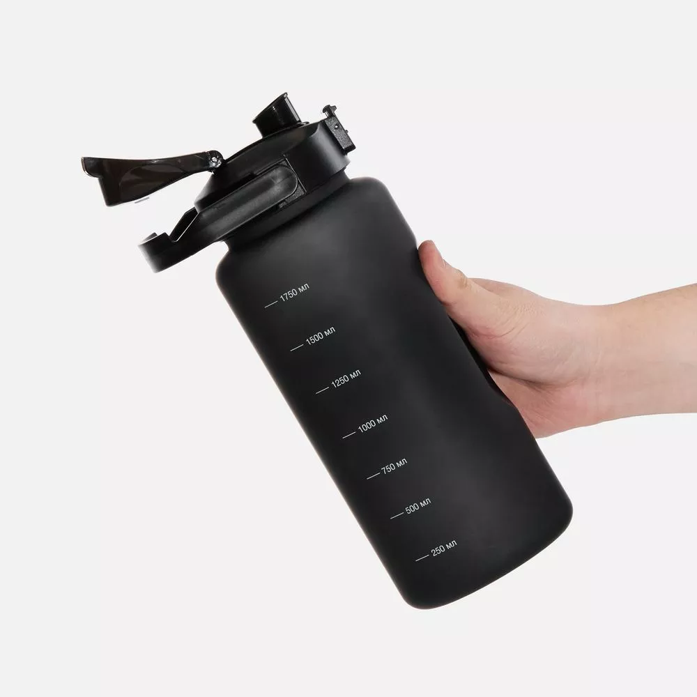 Бутылка объемом 2 л прекрасно подойдет для спортсменов, которым необходим большой объем жидкости для регулирования водного баланса в организме. Бутылка снабжена ручкой для переноски, откидной крышкой с замком-фиксатором и трубочкой для питья. В комплекте с бутылкой идет сумка-чехол из неопрена с регулируемым ремнем, карабином для ключей, карманом для телефона и отделением для карточек.