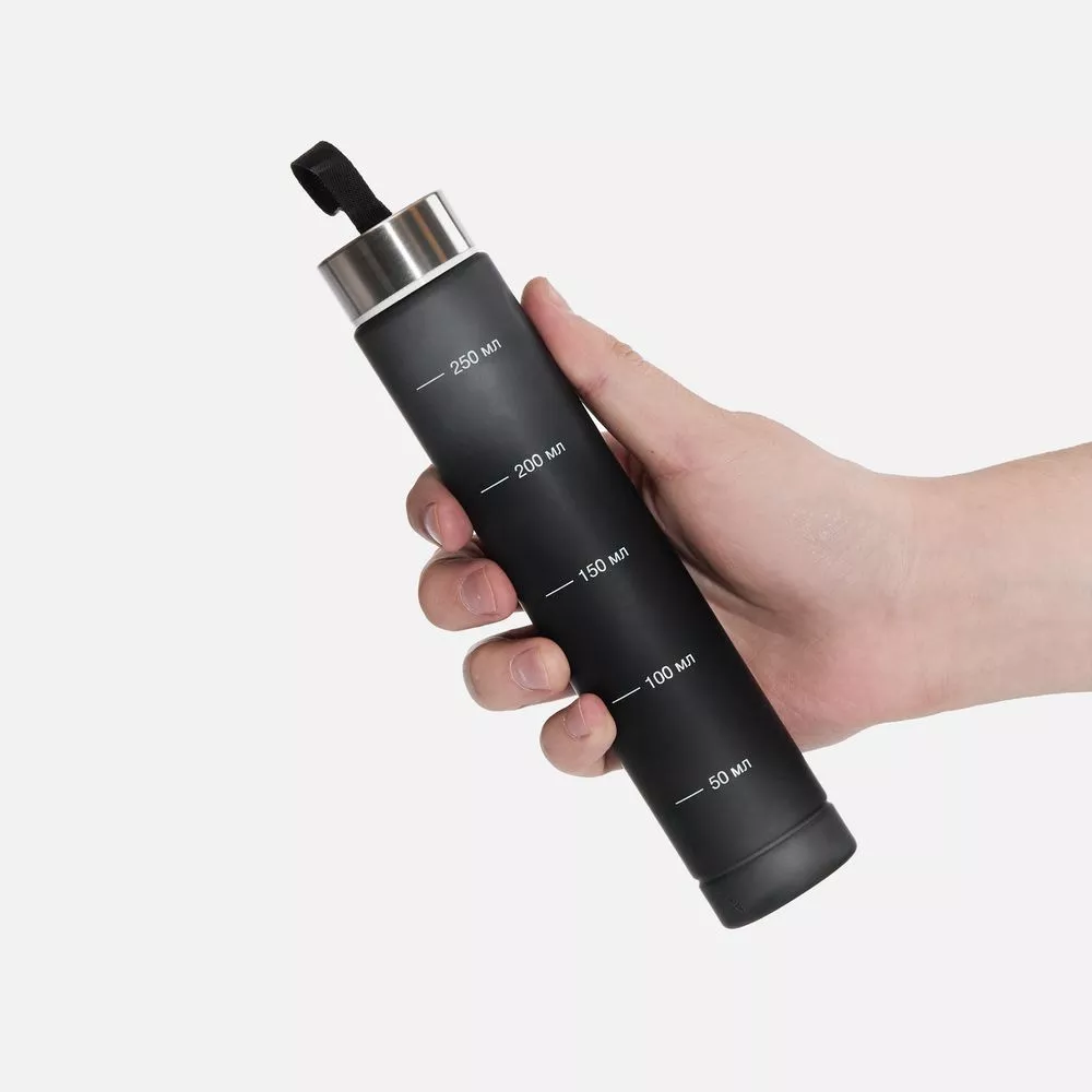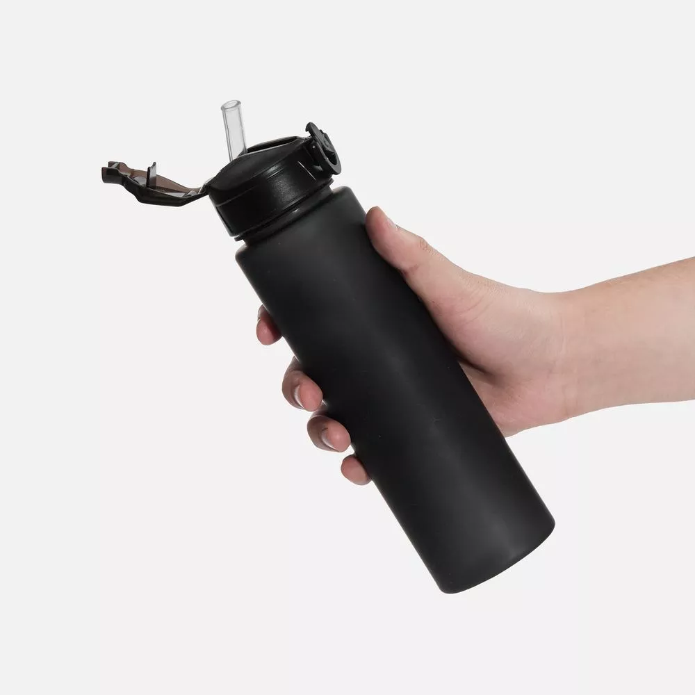 Средняя бутылка 750 мл универсальна и по объему, и по форме. Оснащена откидной крышкой с блокировкой от проливания и питьевой системой с трубочкой — ей одинаково удобно пользоваться и в спортзале, и в офисе.