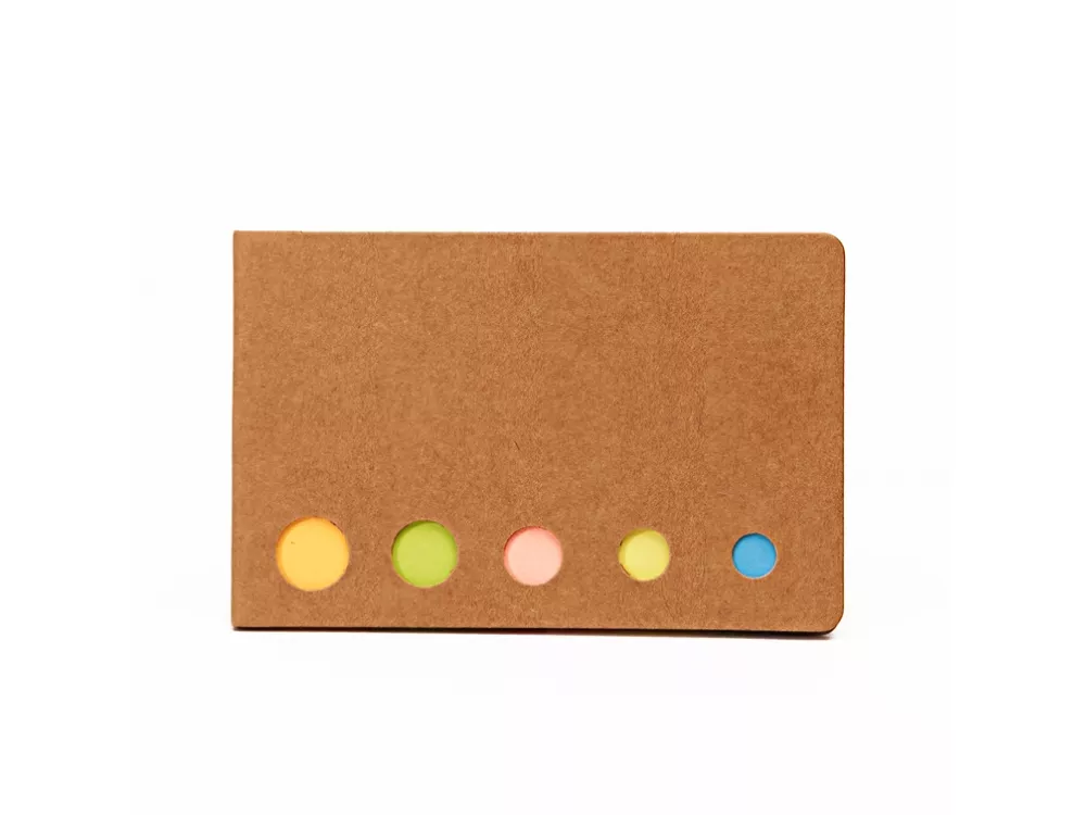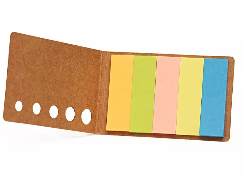 Оригинальный и практичный блокнот из переработанного картона со 100 полосками-липучками разных цветов.