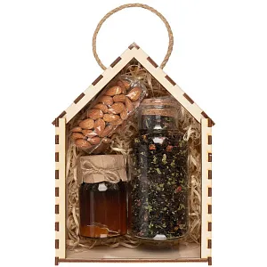 Подарочный набор Sweet Harmony — идеальный способ окунуться в мир гармонии и уюта. В этом наборе все необходимое для незабываемого вечера: ароматный черный чай, полезный мед и хрустящий миндаль.