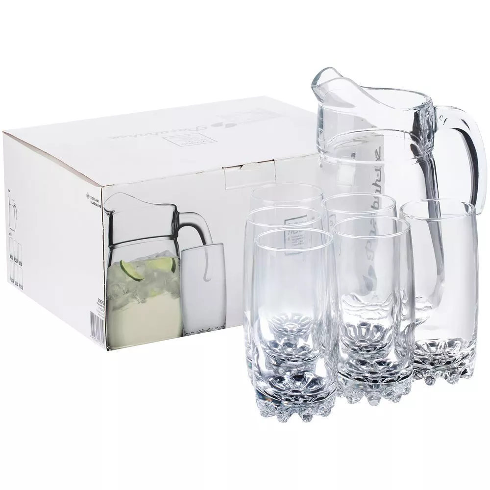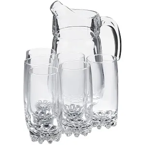 Набор Sylvana включает 6 стаканов и кувшин из прочного и качественного стекла. Элегантный и оригинальный дизайн набора добавит удовольствия от употребления напитков во время праздничного застолья и каждый день.