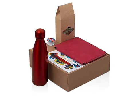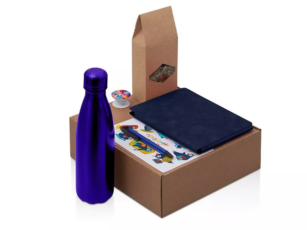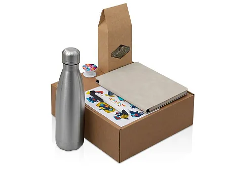 МатериалТовара:Бутылка - нержавеющая сталь, ручка - металл, пластик, блокнот- полиуретан, FSC бумага, держатель для телефона - пластик, чай - крафт-пакет, коробка - картон