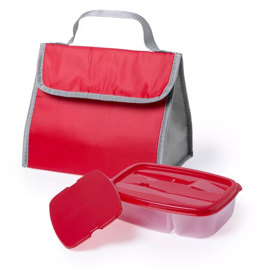 Термосумка "домик" с широким дном, застежкой на липе и прочной нейлоновой ручкой, из полиэстера 600D и изотермической внутренней отделкой из алюминияПрозрачное окошко для вкладывания бейджа на оборотной стороне Контейнер в цвет, для пищевых продуктов, не содержащий BPAВ дополнительном отделении крышки контейнера скрепятся нож и вилка из пластика в цвет крышки.Контейнер ёмкостью 1,6 л состоит из большого и маленького отделений для разных продуктовможно использовать в микроволновой печиможно использовать в посудомоечной машинеможно замораживатьне использовать в духовке, на электрической, стеклокерамической или газовой плитене использвать на открытом огнеМатериал: Полиэстер 210D Алюминий