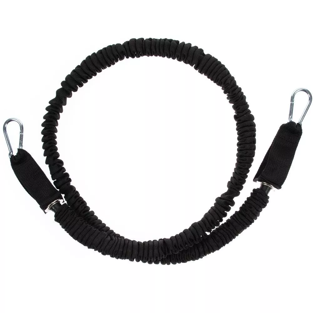 Каждый эспандер оснащен надежным металлическим карабином с дополнительным фиксатором, который обеспечит безопасность при выполнении упражнений и будет способствовать плавному натяжению резинки. Инвентарь можно закрепить на двери при помощи дверного анкера (в комплекте) и добавить в тренировку больше разных упражнений.