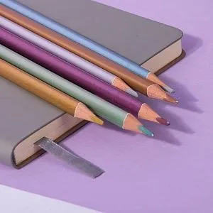 Набор 6 цветных карандашей с эффектом металлик. Упаковка крафт с вырубкой. Двойная проклейка грифеля. Грифель категории А, 3,0 мм. Многослойная прокраска трехгранного корпуса. Оттенок металлик виден на белой бумаге, а на черной будет смотреться еще эффектнее. • Яркие цвета металлик • Трехгранный корпус из высококачественной древесины • Прочный грифель 3.0 мм • Легко затачиваются