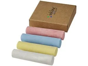 Набор мелков в натуральной коробке 4 единицы. 4 цветных мелка в бумажной коробке. Нанесение на элементах на предлагается. Бумага.