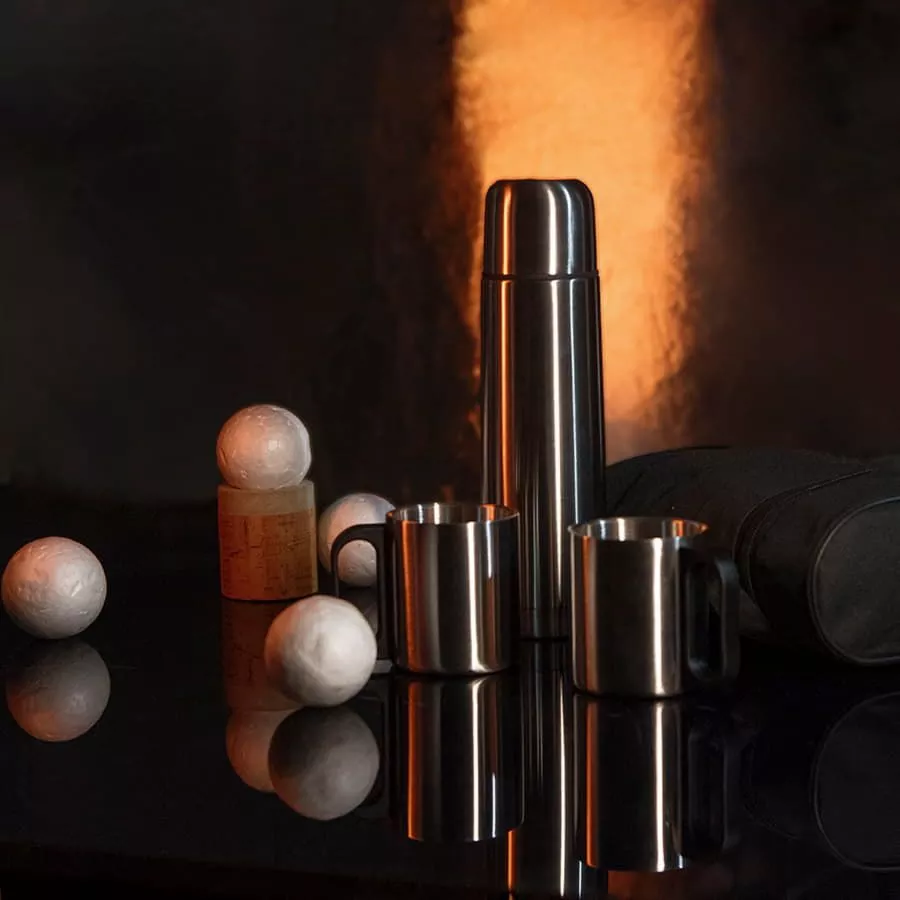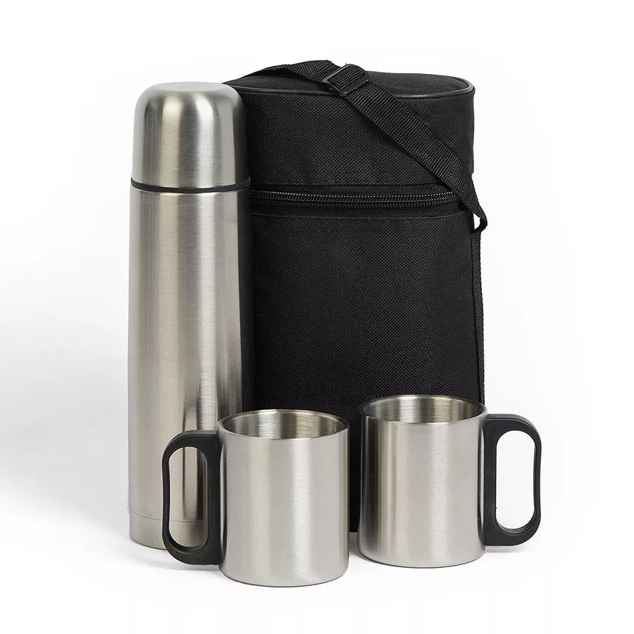 чехол: 26х16х10 смтермос: D=6,7 см; H=24,5 см; 500 мл; кружки: D=6,7 см; Н=8 см; 220 мл