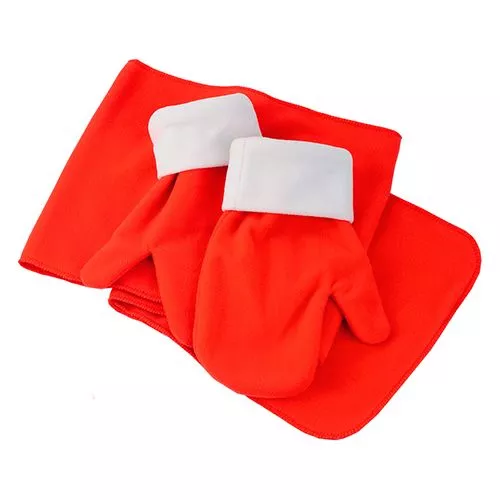 Этот зимний набор из флиса идеально подойдет для холодных дней. Он включает в себя теплые варежки, мягкий колпак Санты-Клауса и уютный шарф. Все элементы выполнены из мягкого и приятного на ощупь флиса, который отлично сохраняет тепло и защищает от ветра. Такой комплект не только согреет вас в зимнюю стужу, но и добавит ярких праздничных ноток в ваш образ.