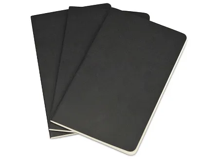 Эти записные книжки Cashier от Moleskine отличаются гибкой и прочной картонной обложкой черного цвета и хорошо заметной прошивкой на корешке. Последние 16 листов отделяются. Есть карман для заметок на отдельных листах. В каждый набор из 3 штук вложена открытка с историей Moleskine. Нелинованные страницы из бескислотной бумаги.