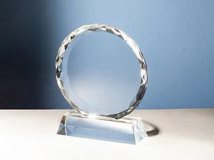 Награда имеет форму монеты с огранкой, за счёт чего интересно переливается в лучах света. Сама монета и основание выполнены из прозрачного стекла. · Интересная кристаллическая огранка · Универсальность Тиснение (Блинт) на данный товар осуществляется бесплатно. Оплачивается только настройка оборудования в размере 6200 рублей на весь тираж.