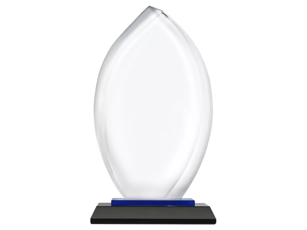 Стеклянная награда, изображающая язык пламени. Может символизировать благополучие, энергию и силу, поэтому особенно хороша в качестве мотивирующего бизнес-подарка. Благодаря лаконичной форме, обладает большой площадью под нанесение.