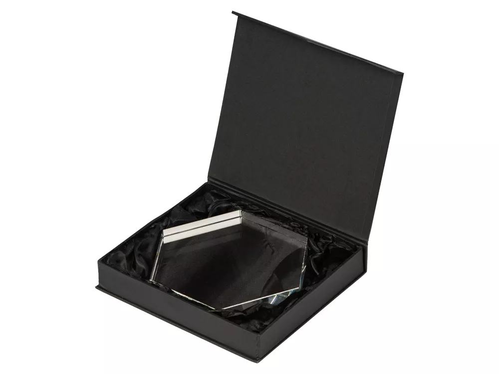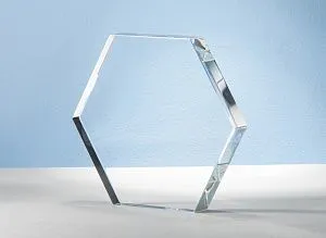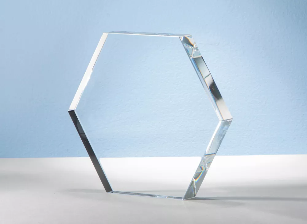 Награда выполнена из прозрачного стекла и не имеет постамента. Форма шестигранника часто встречается в природе, например, в пчелиных сотах, и является символом гармонии и изобилия. · Минималистичный дизайн · Форма шестиугольника · Большая поверхность для нанесения Тиснение (Блинт) на данный товар осуществляется бесплатно. Оплачивается только настройка оборудования в размере 6200 рублей на весь тираж.