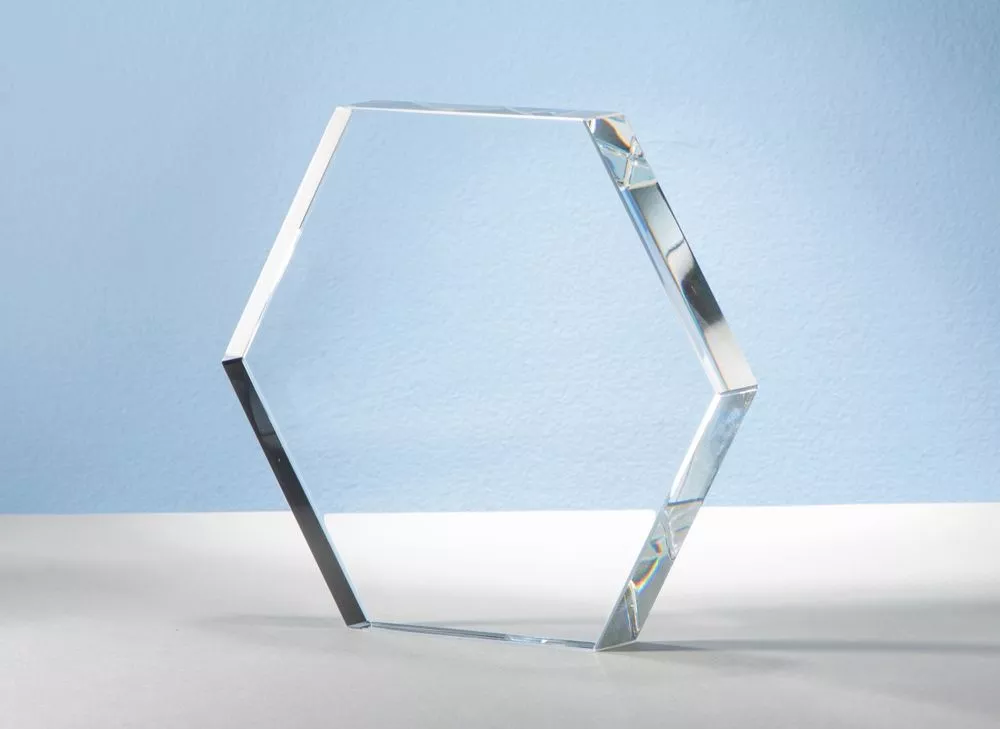 Награда выполнена из прозрачного стекла и не имеет постамента. Форма шестигранника часто встречается в природе, например, в пчелиных сотах, и является символом гармонии и изобилия. · Минималистичный дизайн · Форма шестиугольника · Большая поверхность для нанесения Гравировка (CO2 лазер) (Без чернения) на данный товар осуществляется бесплатно. Оплачивается только настройка оборудования в размере 1100 рублей на весь тираж.