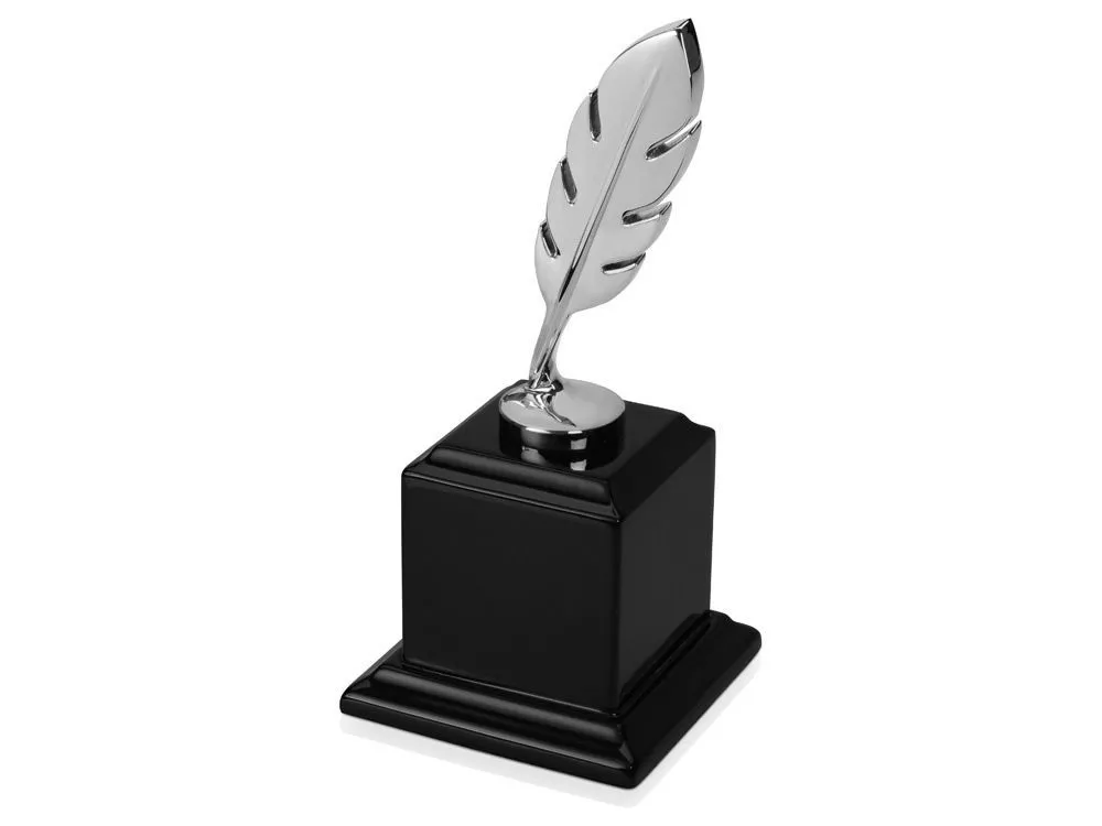 Элегантное серебристое перо на постаменте черного цвета. Замечательная награда для победителей литературных конкурсов. На постамент награды можно нанести любую надпись или прикрепить шильд. Гравировка (оптоволоконный лазер) (Без чернения) на данный товар осуществляется бесплатно. Оплачивается только настройка оборудования в размере 1100 рублей на весь тираж.