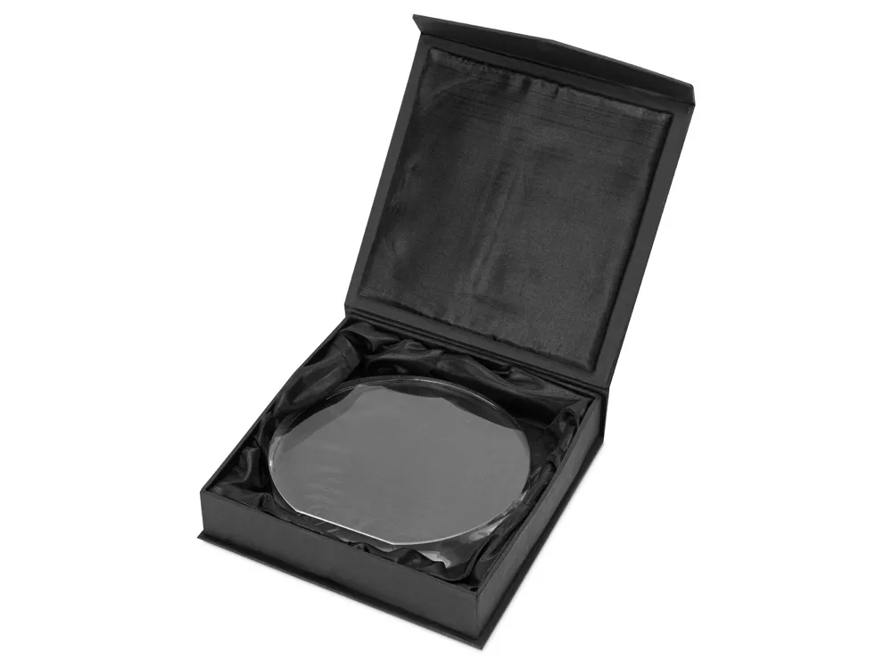 Стеклянная награда плавной круглой формы. Размер награды и особенности геометрической формы обеспечивают большую площадь под нанесение. Гравировка (CO2 лазер) (Без чернения) на данный товар осуществляется бесплатно. Оплачивается только настройка оборудования в размере 1000 рублей на весь тираж.