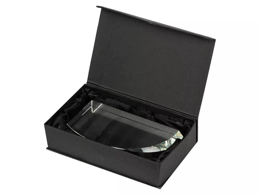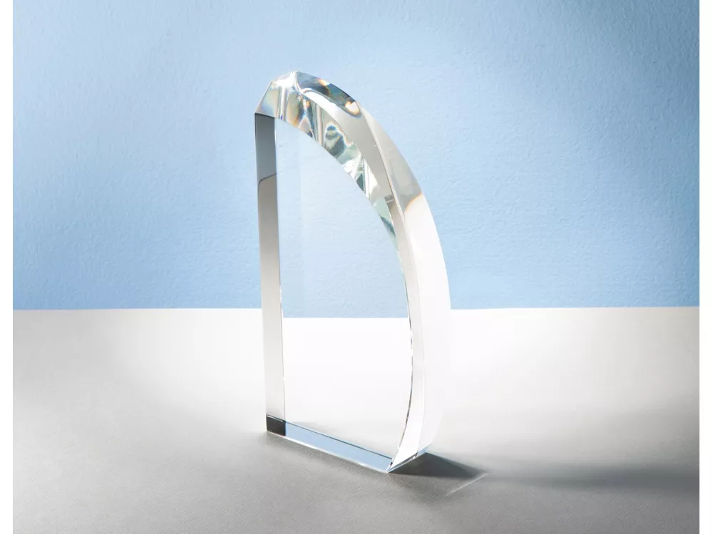 Награда по форме напоминает парус. Олицетворяет собой лёгкость, безмятежность и силу одновременно. Выполнена из прозрачного стекла и не имеет постамента. · Минималистичный дизайн · Интересная форма · Большая поверхность для нанесения Тиснение (Блинт) на данный товар осуществляется бесплатно. Оплачивается только настройка оборудования в размере 6200 рублей на весь тираж.