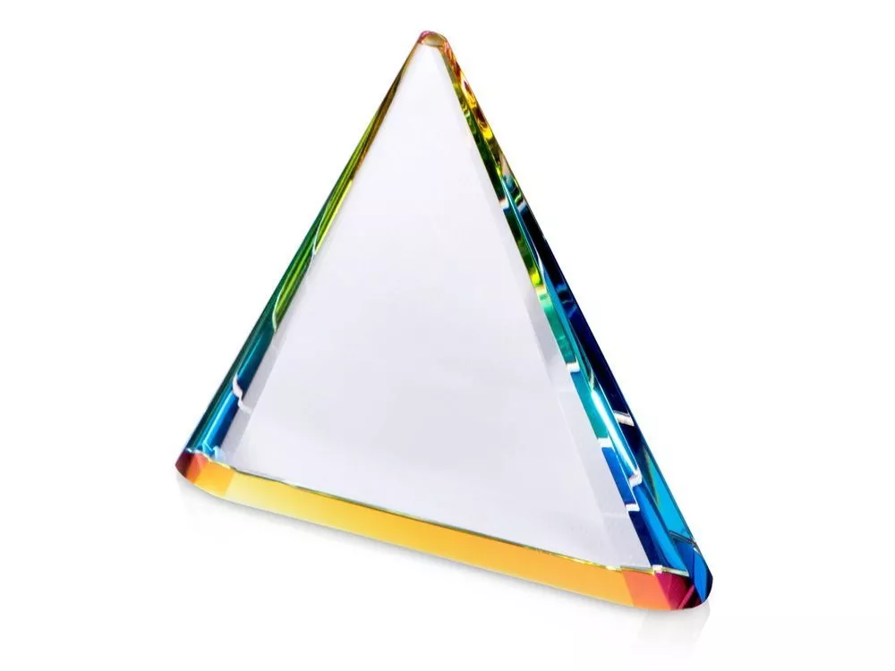 Награда выполнена из прозрачного стекла, переливающегося на свету всеми цветами радуги, и не имеет постамента. Под разными углами награда сияет разными цветами, а иногда и всем радужным спектром сразу. Одновременно минималистична и оригинальна. • Лаконичный дизайн • Переливается всеми цветами радуги Тампопечать (1 цвет (цветные изделия)) на данный товар осуществляется бесплатно. Оплачивается только настройка оборудования в размере 4000 рублей на весь тираж.