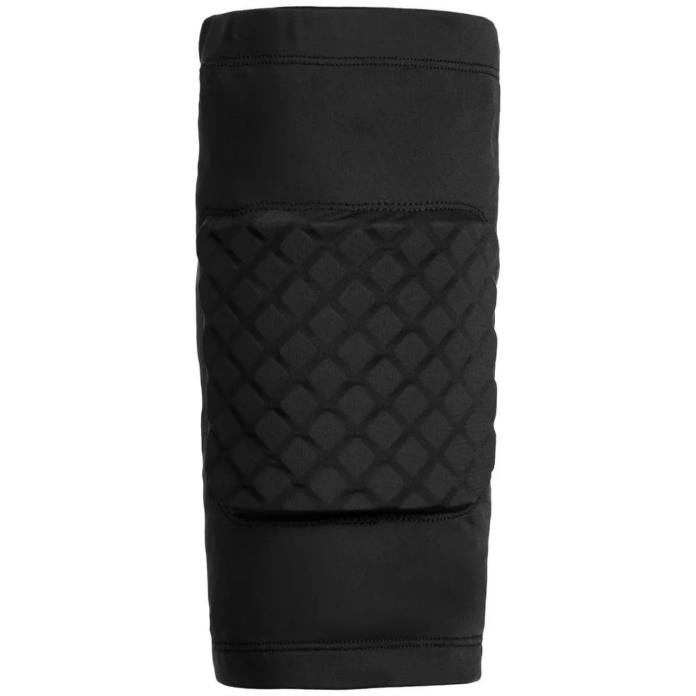 Ткань наколенника обладает компрессионным эффектом, позволяет коже дышать, хорошо отводит влагу. Силиконовые накладки на внутренней стороне удерживают наколенник на ноге, не позволяя ему сползать. Защитные подушки сделаны из мягкого вспененного пластика (ЭВА), который пружинит, защищая колено от ударов, а сотовая конструкция защитной вставки не препятствует сгибанию ноги в колене.