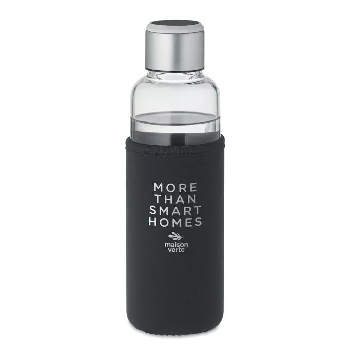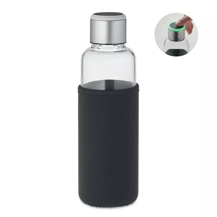 Стальная бутылка из боросиликатного стекла с напоминанием о гидратации в чехле. Сенсорный индикатор светится каждый час, напоминая о том, что пора пить. Включает 1 батарейку CR2032. Емкость: 500 мл.