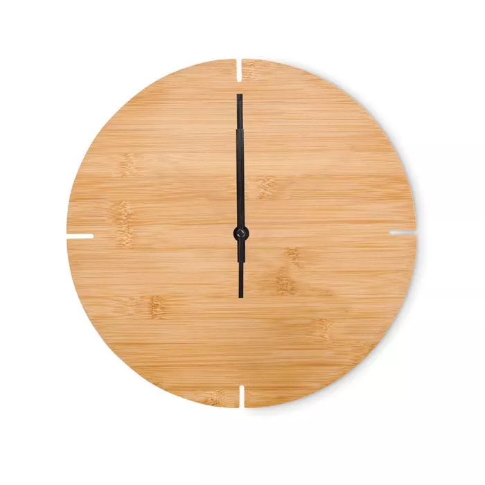 "Настенные часы из бамбука с системой ""тик-так"". Требуется 1 батарейка типа АА, не входит в комплект."