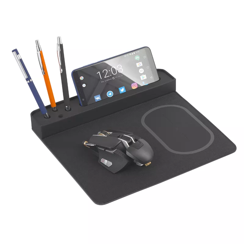 Настольная подставка 7420 - отличный организатор рабочего пространства, позволяет держать все необходимое под рукой, сочетает в себе функции коврика для мыши и зарядного устройства. Встроенное беспроводное зарядное устройство получает питание через провод USB/microUSB 150 см, который идет в комплекте. При наличии питания световой индикатор отображает статус зарядки: красный - ожидание подключения на беспроводном модуле, синий - идет зарядка через Qi-интерфейс. Подходит для всех беспроводных устройств Qi-стандарта. Данная технология является универсальной, её используют производители смартфонов, работающих на платформе android и iOS. В характеристиках устройства должна быть обозначена поддержка беспроводной зарядки.