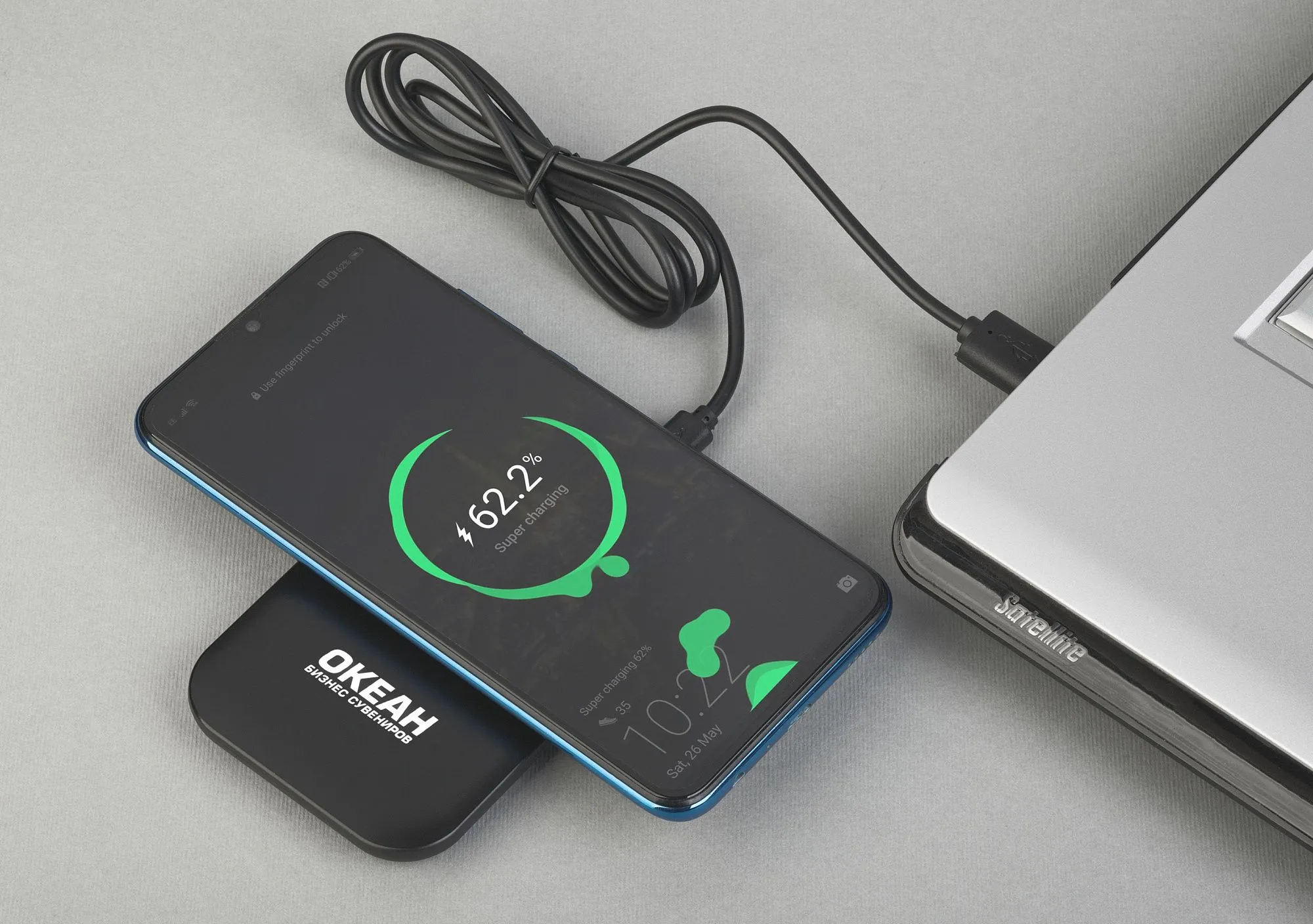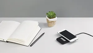 Компактное настольное устройство для беспроводной зарядки гаджетов/смартфонов.